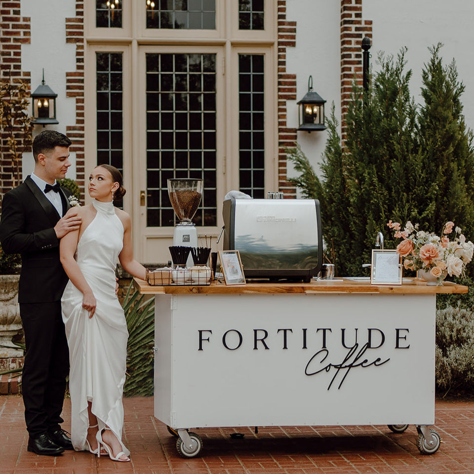 Fortitude Coffee Cart redefines mobile espresso catering, presenting an exquisite selection of beverages sourced from top-tier ingredients. Designed for indoor or outdoor events, including weddings, corporate galas, birthday soirées, bridal showers and more, Fortitude Coffee Cart epitomizes exceptional service and unparalleled taste. Infused with a dedication to excellence, Fortitude Coffee Cart embodies the epitome of sophistication, effortlessly blending convenience with the highest echelon of flavor. Elevate your event with the luxurious allure of premium coffee offerings and custom edits all tailored to your needs, promising an unparalleled experience for discerning guests.